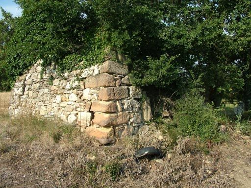 Elle ressemble à un maset, mais les murs inclinés et recouverts de lierre laissent apercevoir la fausse voûte à encorbellement propre aux cabanes.