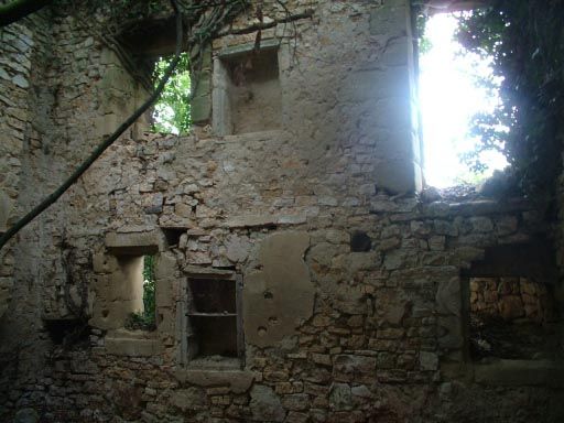 orientée au sud. Piédroits et encadrement des ouvertures sont en calcaire gréseux taillé. On constate la présence d'un porche, d'une sorte de terrasse, d'un escalier extérieur effondré menant à la pièce du haut,