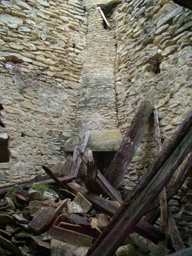 l'ouest, son linteau forme un arc, le piédroit est gravé d'inscriptions illisibles, une porte en bois le ferme. Les chaînages d'angles du maset sont en moellons calcaires, on y trouve deux blocs de pierre de taille en formes de colonnes octogonales en gré dur (remploi) au sommet, juste sous les tuiles. La toiture à deux pans en tuiles creuses s'est effondrée. Deux fenêtres ajourent l’étage. Une niche, une cheminée dans l’angle droit face à la porte, avec gros linteau double et petites pierres sont aménagées. L'édifice est envahi de broussailles.