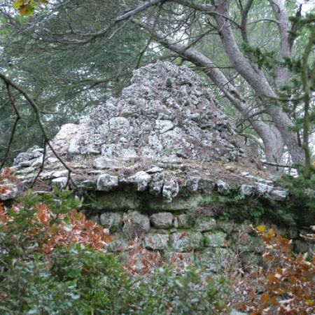 Des vestiges de toiture montrent qu'elle formait une coupole reposant sur un radier de pierres taillées avec corniche de pierres trouées - extrados : moellons calcaires (lapiaz) – intrados : pare feuilles.