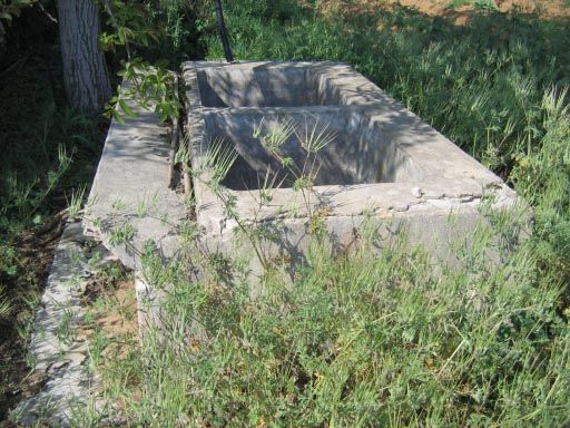A quelques mètres du bâtiment sur le côté Est se trouve un ouvrage en béton composé de deux bassins de forme carrée.