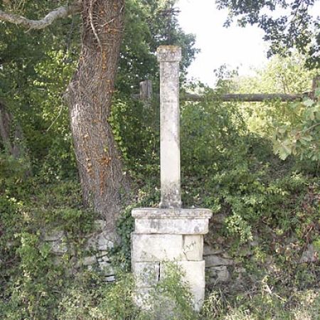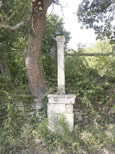 Croix située à l’ouest du hameau du Mas de l’Ancienne Église le long de la voie communale n° 5 carrossable.