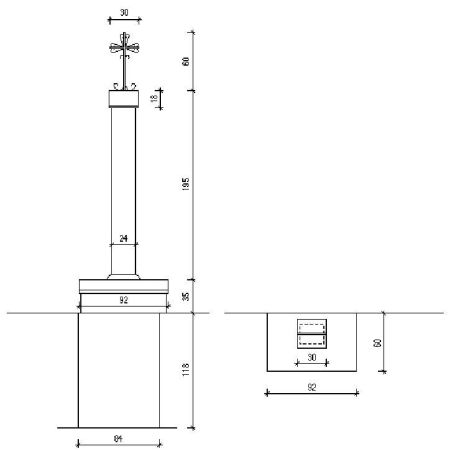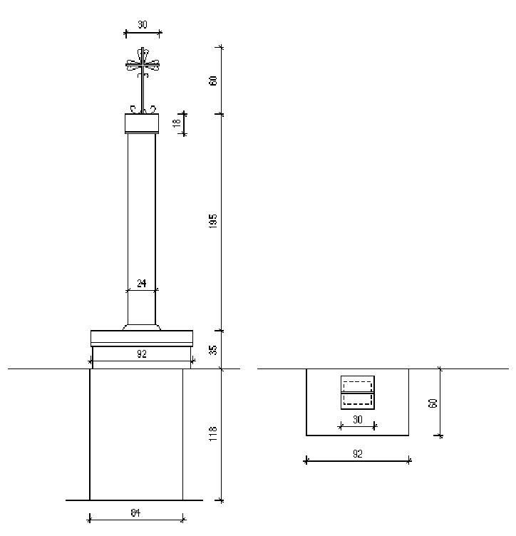 - d’un monolithe en calcaire gris de 0,24 x 0,20 x 1,95 m. de haut, de forme parallélépipédique surmonté par un chapiteau de 0,30 x 0,30 x 0,18 de haut ( une face est épaufrée),