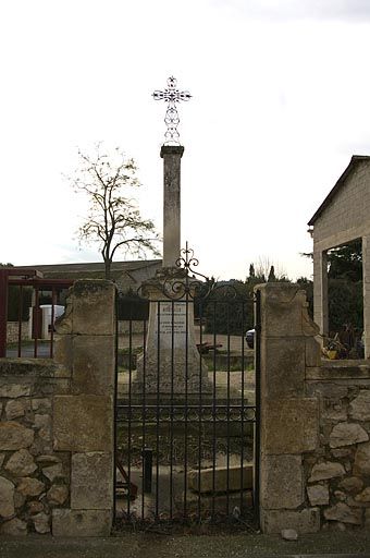 Croix située dans une parcelle privée en bordure de la rue de la République à l'arrière d'un mur en moellon calcaire avec portillon en fer forgé. L'encadrement du portillon en pierre de taille est décoré de volutes. Côté est on peut voir une gravure représentant peut-être un soleil (?). Croix en fonte de fer installée sur un fût carré avec base et chapiteau moulurés en calcaire. Le socle, de plan carré évasé vers le bas et orné de décors géométriques, est installé sur un emmarchement à deux degrés.